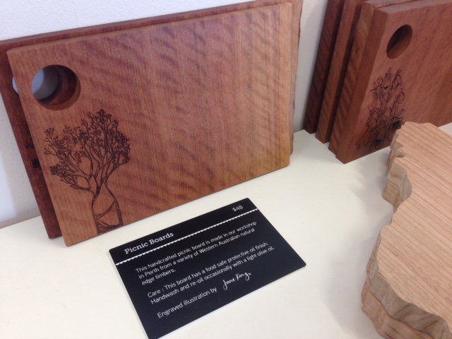 Laser engraved city artworks on Sheoak edeg blocks $45 small, $90 medium size.